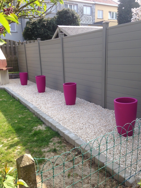Afsluiting tuin met panelen, grind en klinkers.