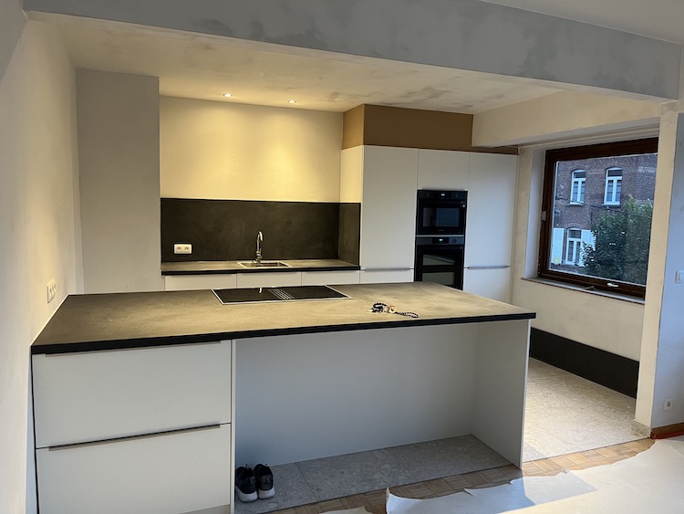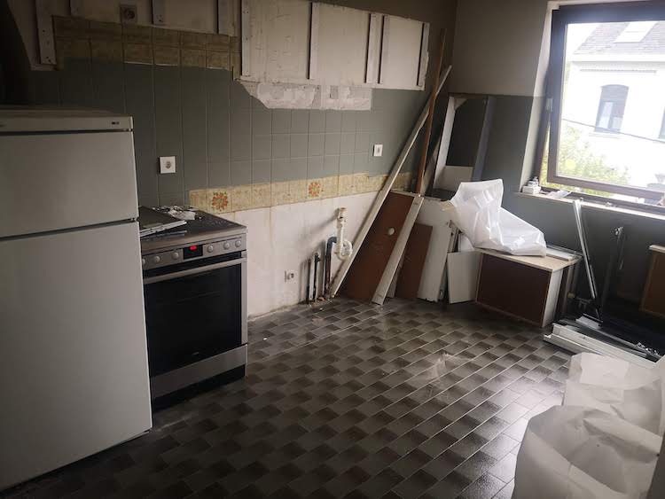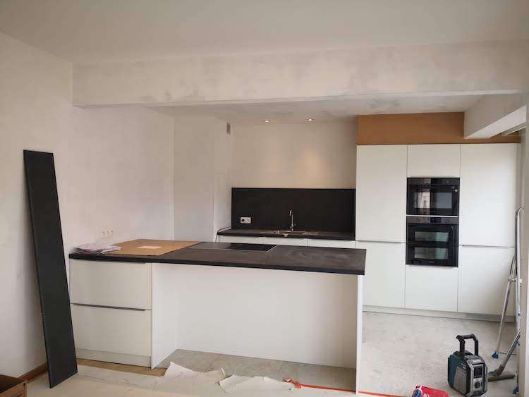 De muur tussen living en keuken werd uitgebroken om de ruimte te vergroten