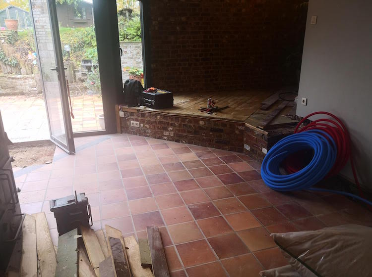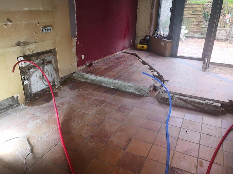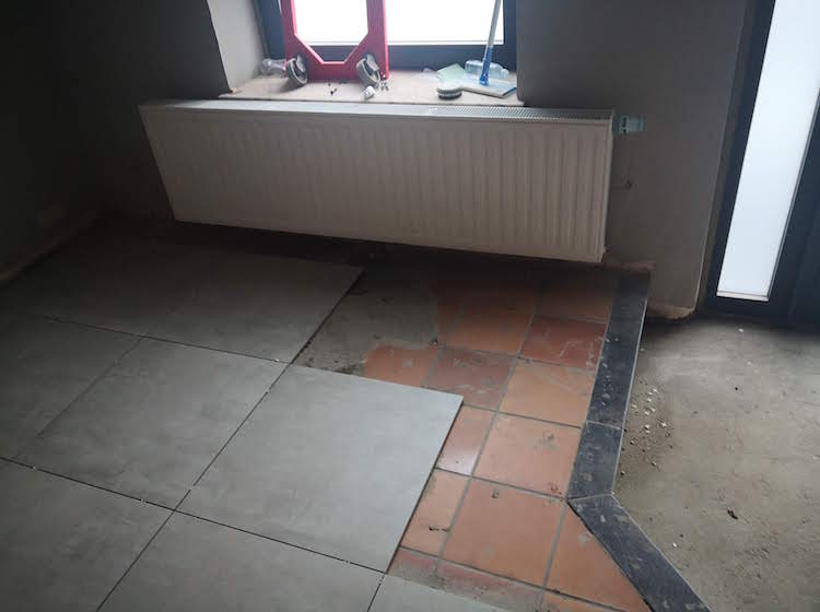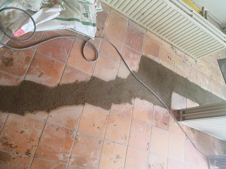 Renovatie vloer met nieuwe leidingen.