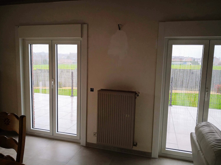 Renovatie van vloeren en renovatie van ramen met electrisch rolgordijn.