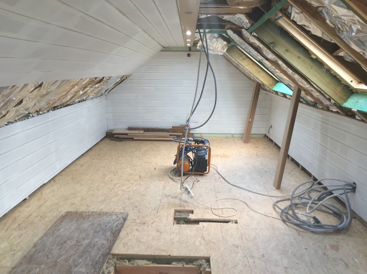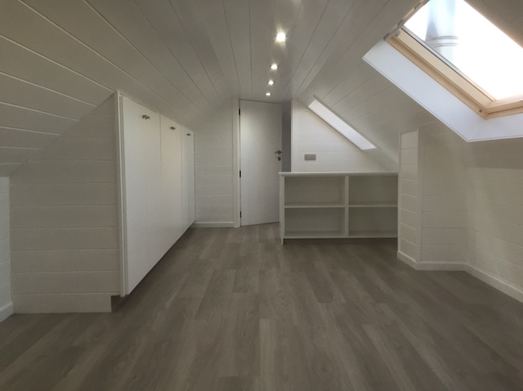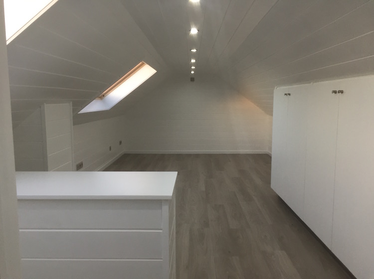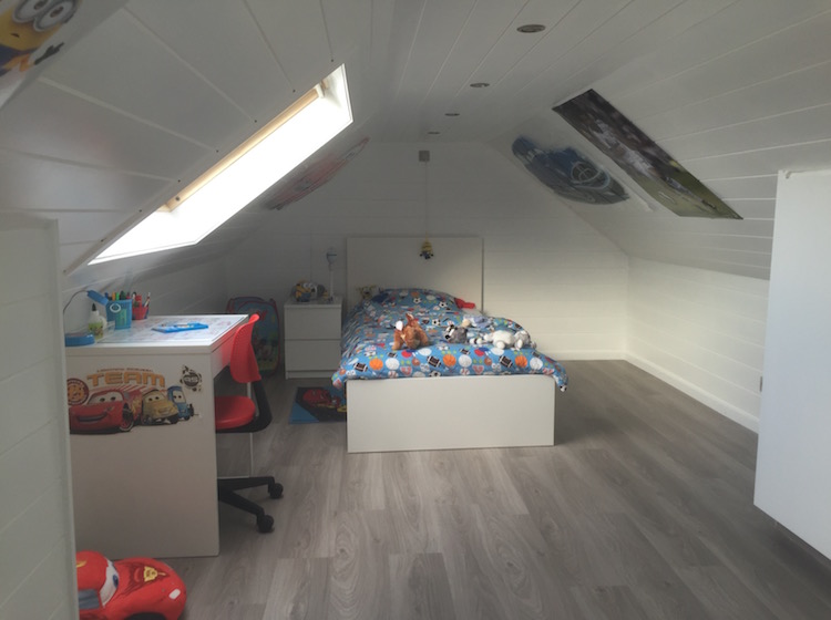 Volledige renovatie van zolder in kinderkamer met aparte speelkamer.
